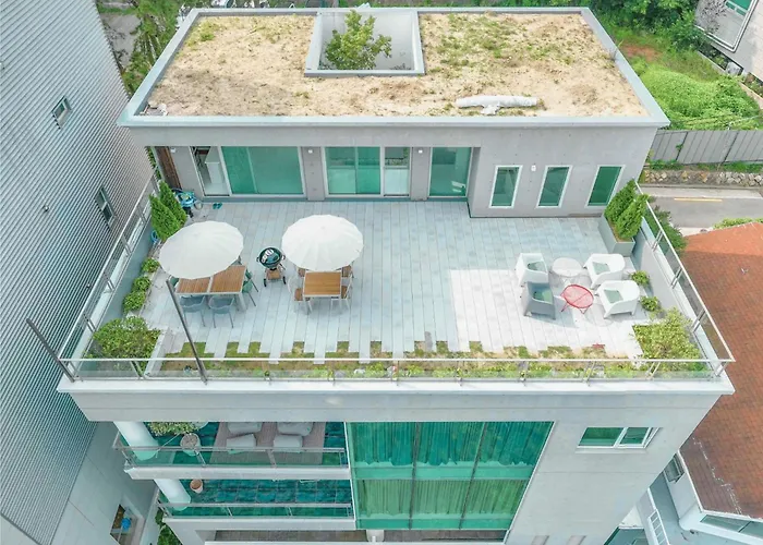 Diese Villa liegt im Viertel Haeundae, in einer Entfernung von ungefähr 10 Autominuten vom Ausstellungs- und Kongresszentrum Busan. Die Villa am Strand 500M2 Busan Ocean View Private Let House befindet sich in 4 Kilometer Entfernung von kulturellen Sehenswürdigkeiten wie der Gwangan-Brücke. Zu den nahegelegenen Sehenswürdigkeiten gehört auch Dalmaji Amphitheater (6 Minuten Fußweg von der Unterkunft entfernt).